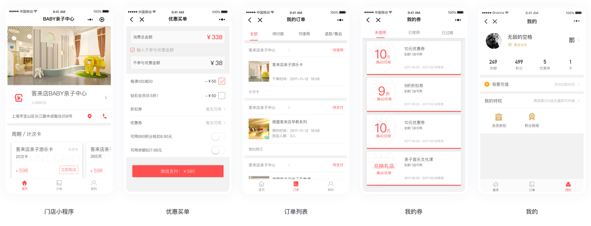 服务项目、优惠买单、明细订单